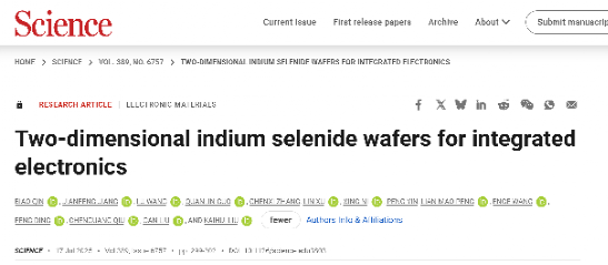 bevictor韦德国际、量子态构筑与测控教育部重点实验室刘灿副教授与北京大学bevictor韦德国际刘开辉教授、电子公司邱晨光研究员等团队合作,提出“固–液–固”材料制备新策略,首次实现了高质量二维硒化铟(InSe)半导体晶圆的制备。该材料展现出优异的电学性能,在晶体管阵列中实现了极高的迁移率与接近玻尔兹曼极限的亚阈值摆幅,并在超短沟道(10 nm以下)器件中,其关键参数—包括工作电压、栅极长度、漏致势垒降低(DIBL)、电子有效质量、开/关比和室温弹道率等,全面优于目前最先进的英特尔3纳米节点技术。2025年7月18日,相关成果以“用于集成电子学的二维硒化铟晶圆”(Two-dimensional indium selenide wafers for integrated electronics)为题,在线发表于《科学》(Science)。