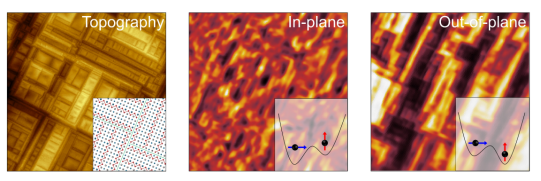 图1. 二维磁性体系FePd2Te2在介观尺度下的形貌结构(原子力显微术)与原子尺度的晶体结构(扫描隧道显微术)表征